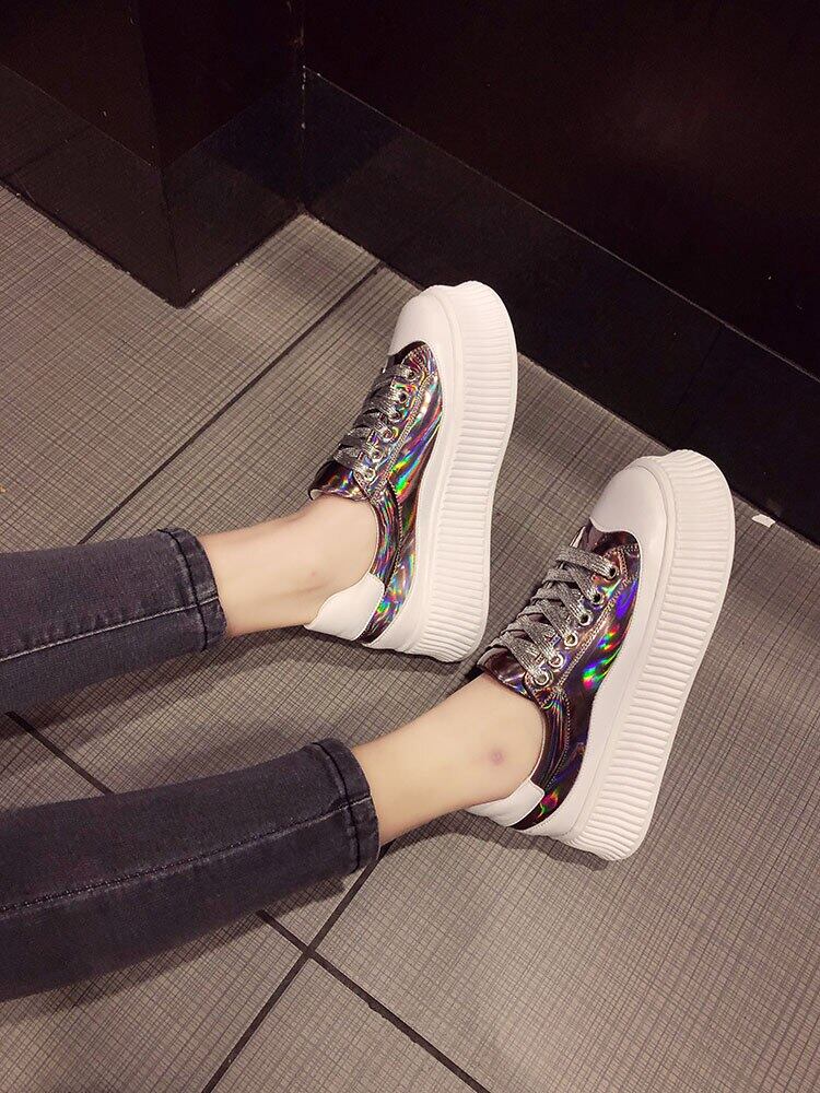レディース パパ 靴 レディース プラットフォームデザイナー スニーカー 厚 さ 6cm レーザー スパンコール カジュアル スニーカー ウォーキング シューズ 靴 X 2 35 | bythekik